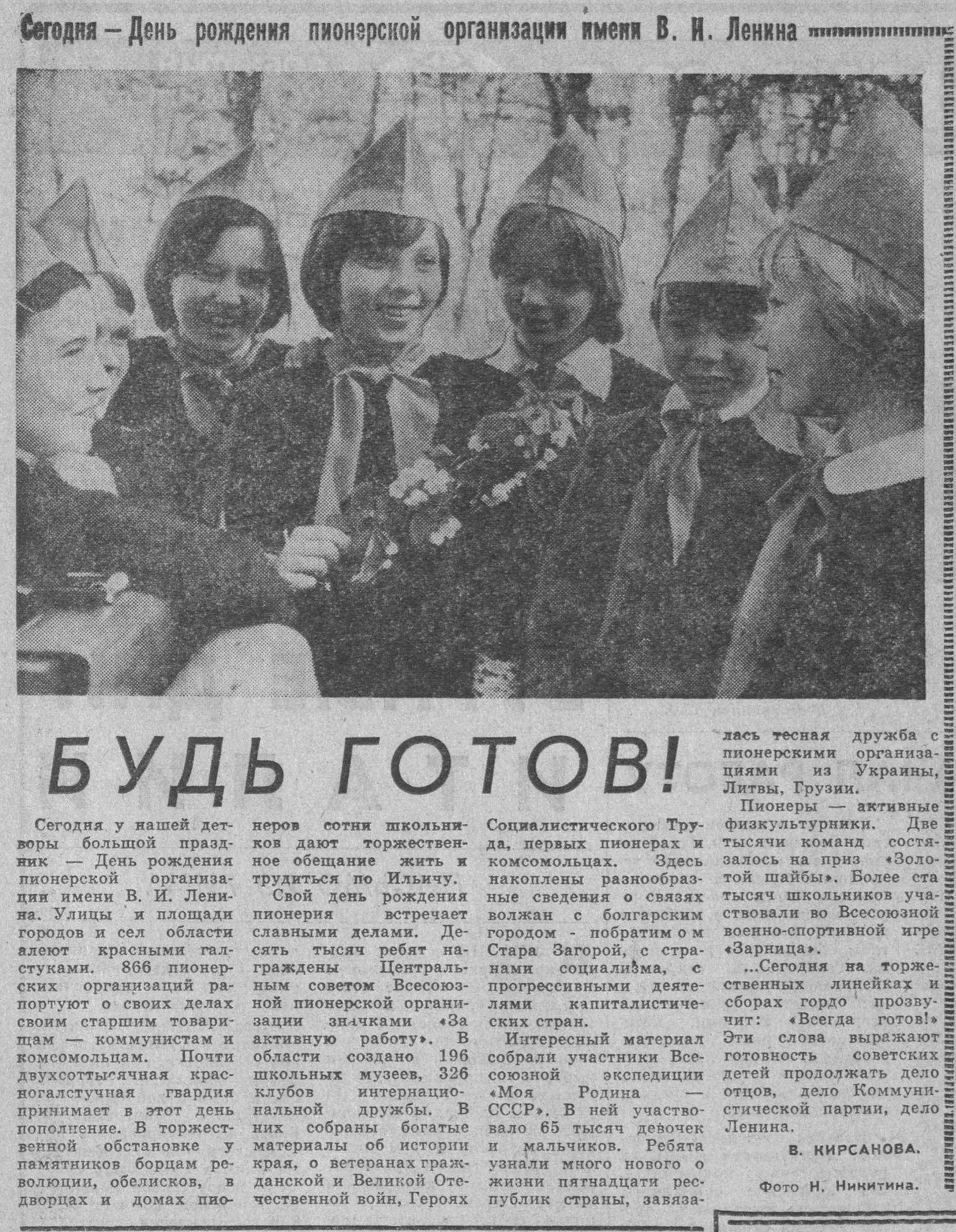 Сегодня — день рождения пионерии. Со сверстниками двадцати стран мира  переписываются ученики 11-й школы. О чем пишут? О счастливой жизни под солнцем Родины, о чудесном городе своем. Пионеры создали музей имени секретаря Коммунистической партии Ирака — Саляма Адиля, дружат с его семьей. По приглашению пионеров у нас в городе гостили его дочери Иман и Шада. Сегодня они отправляются домой.