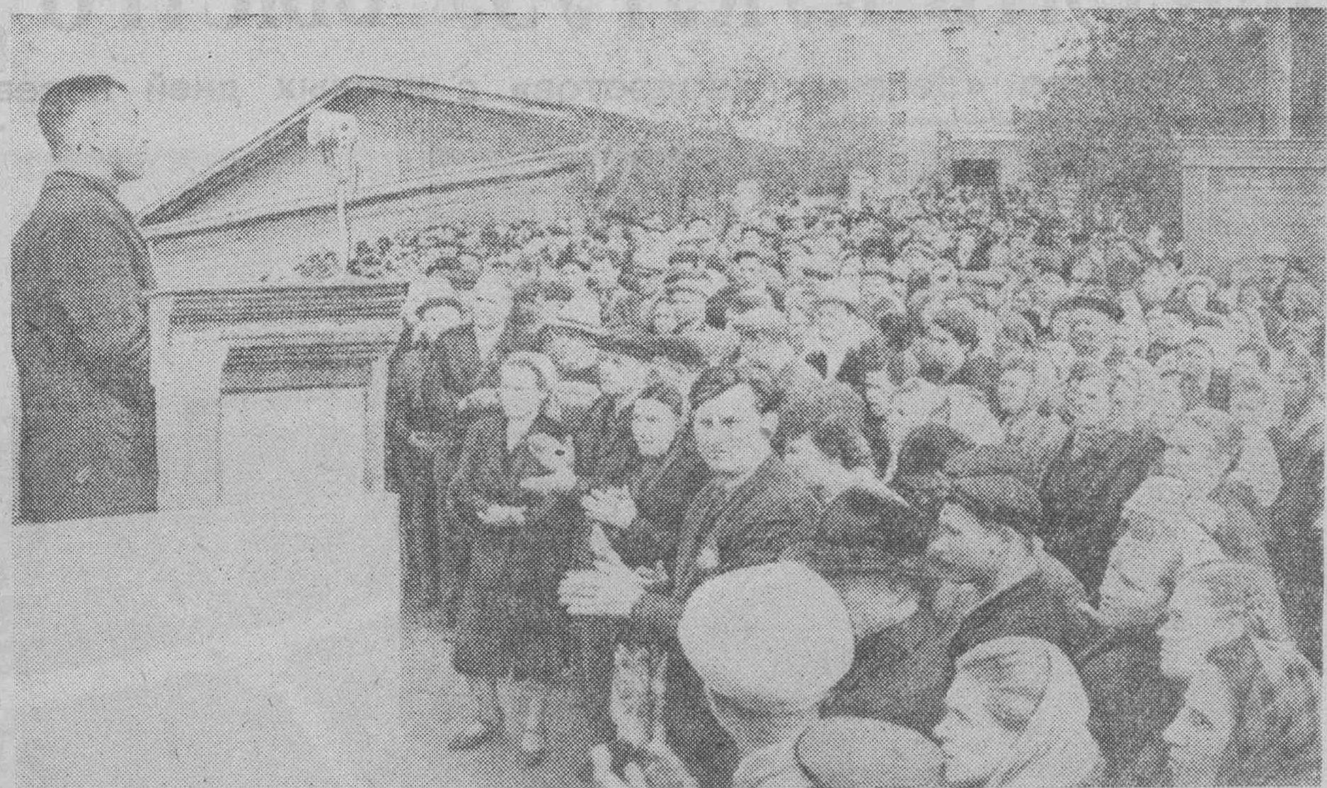 Трудящиеся Хворостянского района внимательно следят за международными событиями. Как и все советские люди, они горячо поддерживают решительные действия Советского правительства по пресечению провокаций заокеанских факельщиков "холодной войны". Выступающий на митинге трудящихся участник Великой Отечественной войны колхозник М.П. Барков говорит: