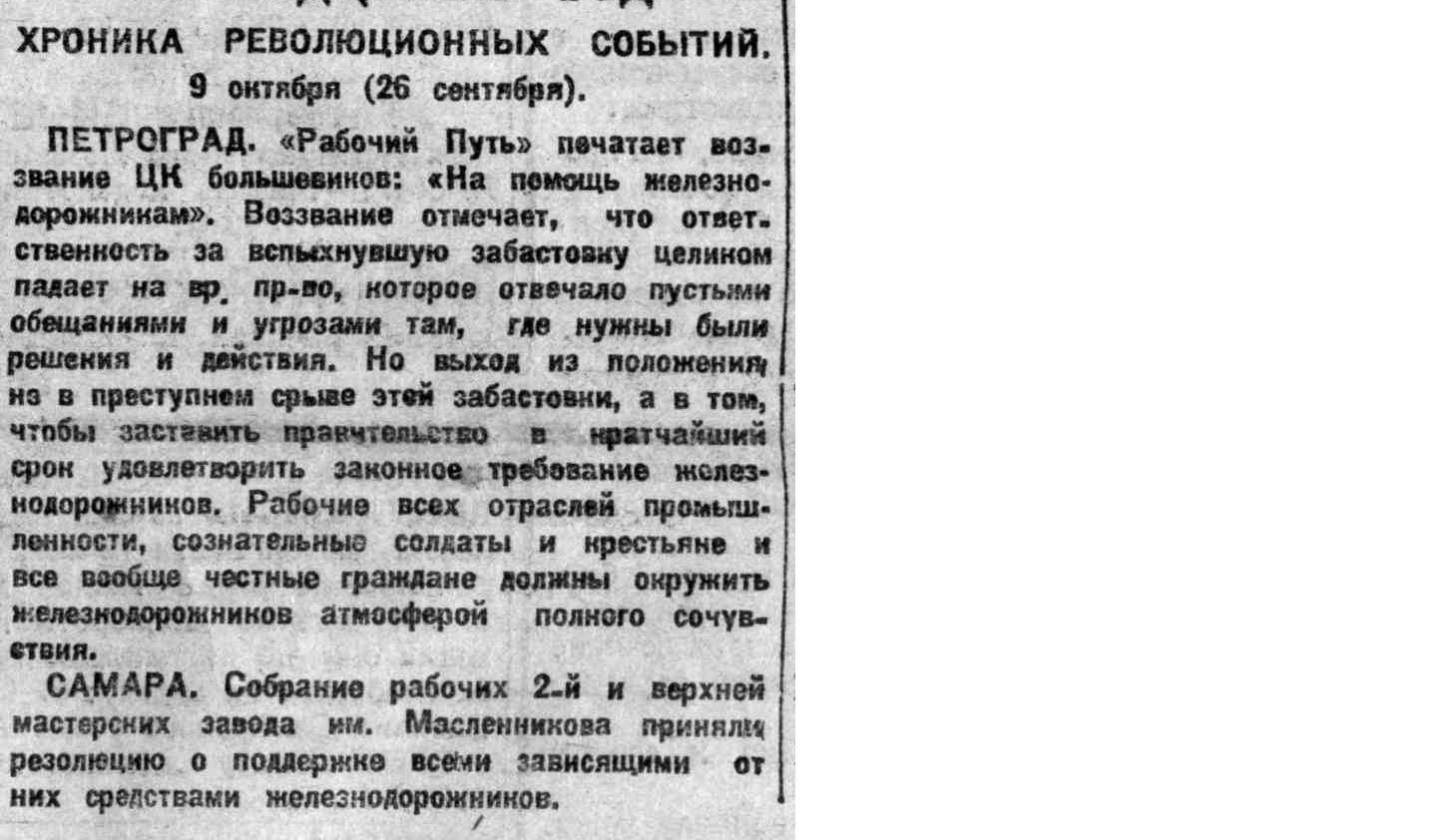 Самара. 1918 год. Начало октября. Солнце золотит опавшую с деревьев листву... В рабочих массах началось брожение, масса начала бурлить, всюду пошел разговор об эвакуации чехо-эсеров. Составляются списки желающих эвакуироваться от большевистско-немецких банд, идущих на Самару... Слышнее становилась канонада... Последний день. Все увезено. Все разрушено. Все отобрано, как после нашествия полчищ Батыя. «Учредилка» закрыла свою лавочку и перебралась на вокзал. Снаряды рвутся уже в городе. Вечером по окраине города, прилегающей к реке Самарке и чугунным мостам, скачут несколько верховых с криком: «Затворяй окна!». Через короткий промежуток времени послышался взрыв, за ним второй — то были взорваны два чугунных моста... А река мирно катила свои воды, не подозревая о подлости, которую только что совершили «благодетели» народа, «избранники» его...
