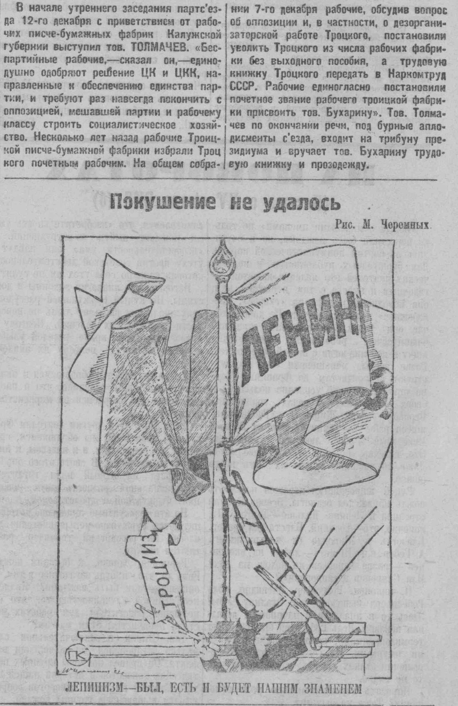 За окном опускаются снежинки. Ветер навивает сугробы и заваливает снегом тракторы и тракторные части, брошенные Богатовской МТС на произвол судьбы под открытым небом. Во двор вошел почтальон. Отряхиваясь от снега, он вручил почту. Пришли газеты, среди которых - «Колхозная газета». На первой полосе, под шапкой «Победой встретим съезд» некий «селькор» (штатный работник борской районной газеты) Пузиков сообщал о блестящих победах богатовской ремонтной мастерской. Через какие розовые окуляры разглядел их (победы то есть) товарищ Пузиков? Не заглянув в мастерские, даже не выезжая из Борска, он безответственно настрочил «ура» заметку. Богатовская МТС работает плохо. Из 16 тракторов по плану отремонтировано только четыре. Пузиков вещает: «Все рабочие охвачены соревнованием». Это глубокая неправда. Председатель рабочкома, явный профбюрократ Козлов работу в этом направлении не ведет, ссылаясь на то, что-де ему не дают кабинета.
