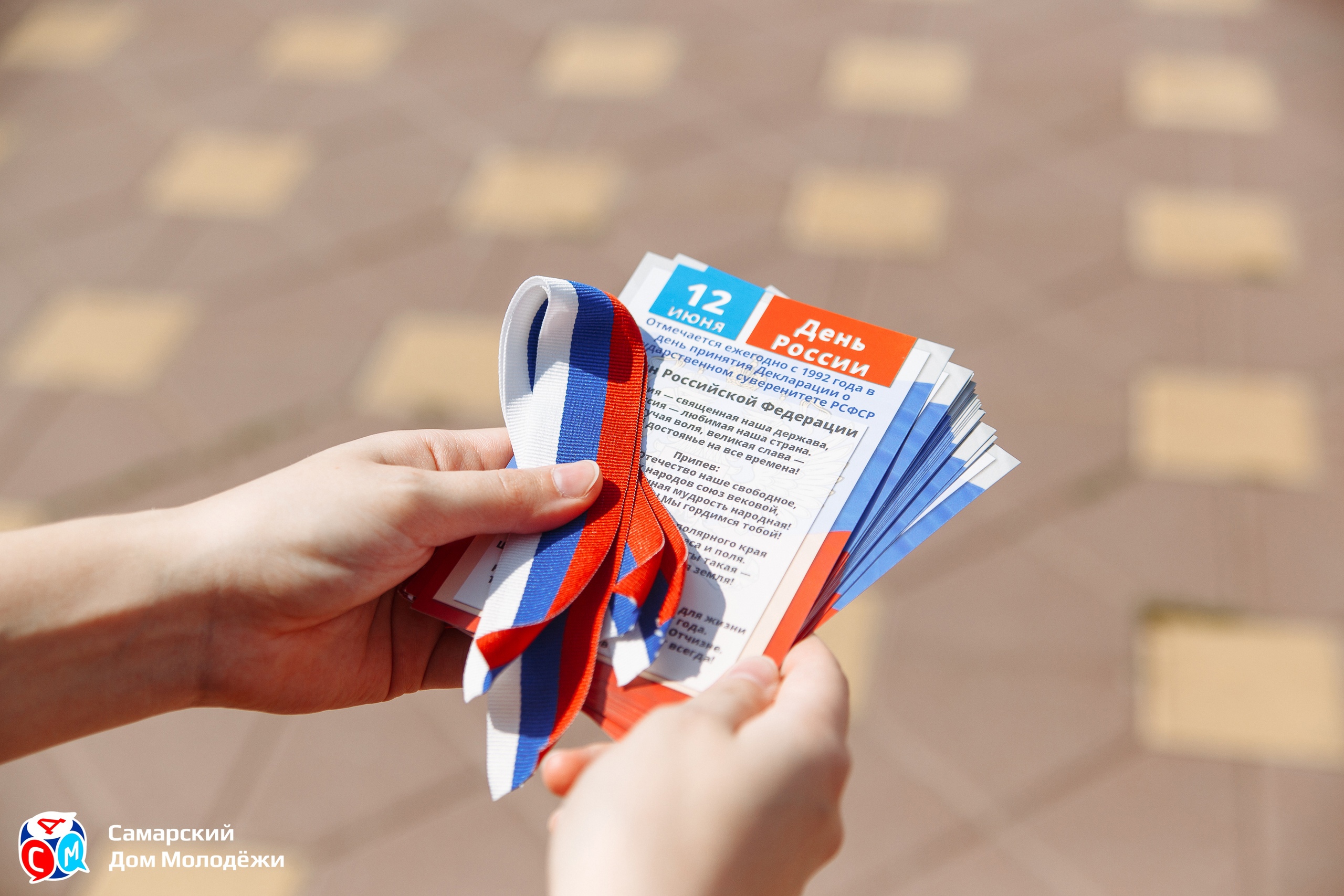 День России, праздник, ленты триколора, волонтеры