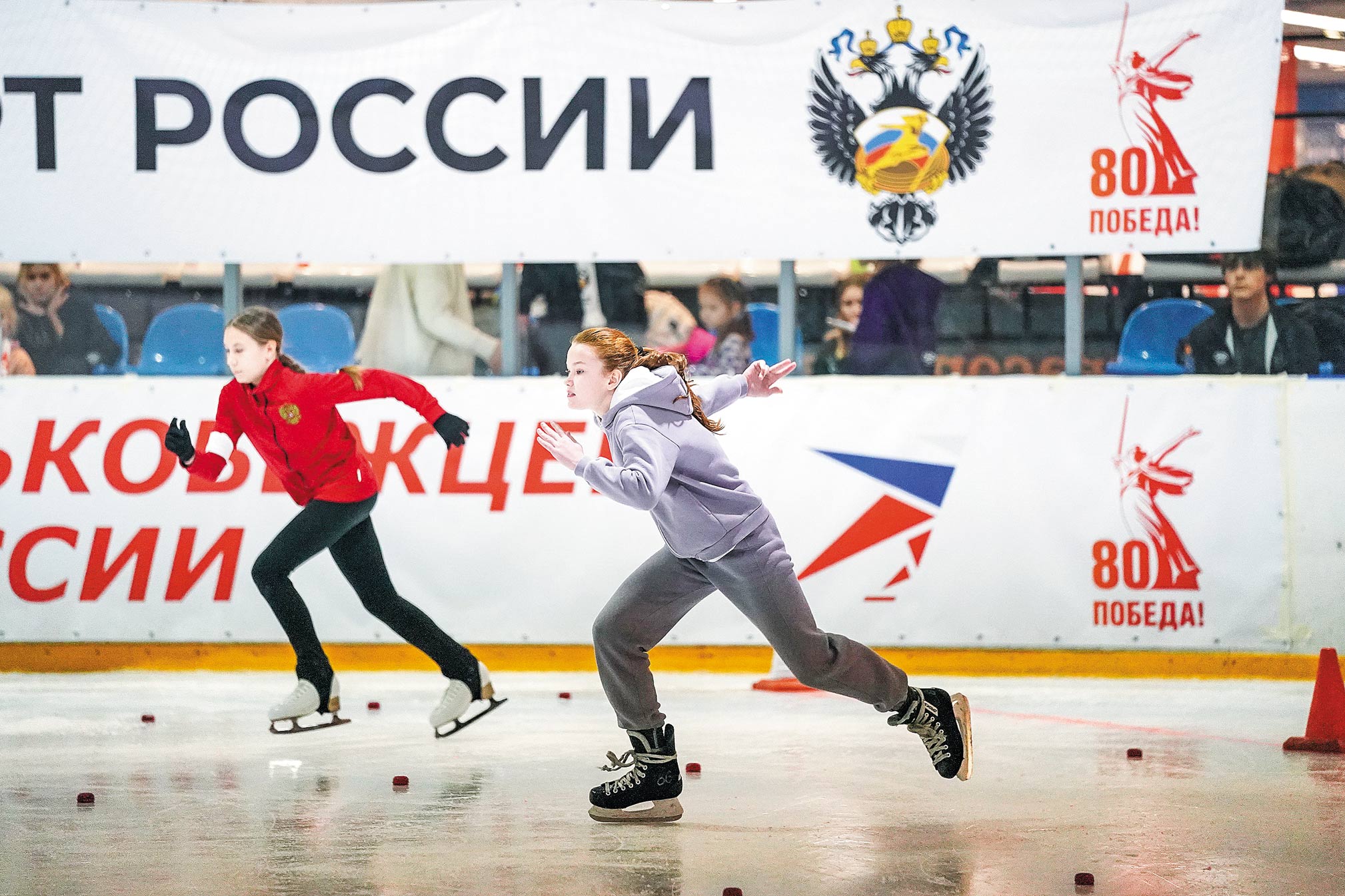 Девушка вторую зиму меняет роликовые коньки на конькобежные. По ее словам, в этот раз переход с асфальта на лед прошел гораздо легче: