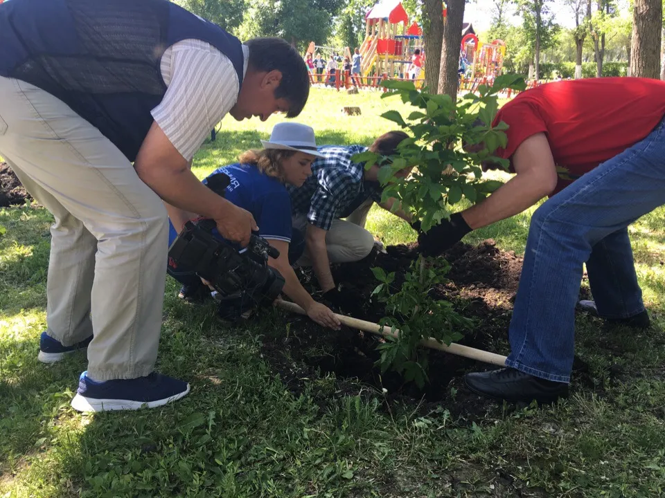 В День охраны окружающей среды, 5 июня, наши коллеги внесли свой вклад в зеленый наряд города. Сотрудники телерадиокомпании высадили в парке "Дружба" 100 саженцев каштанов.
