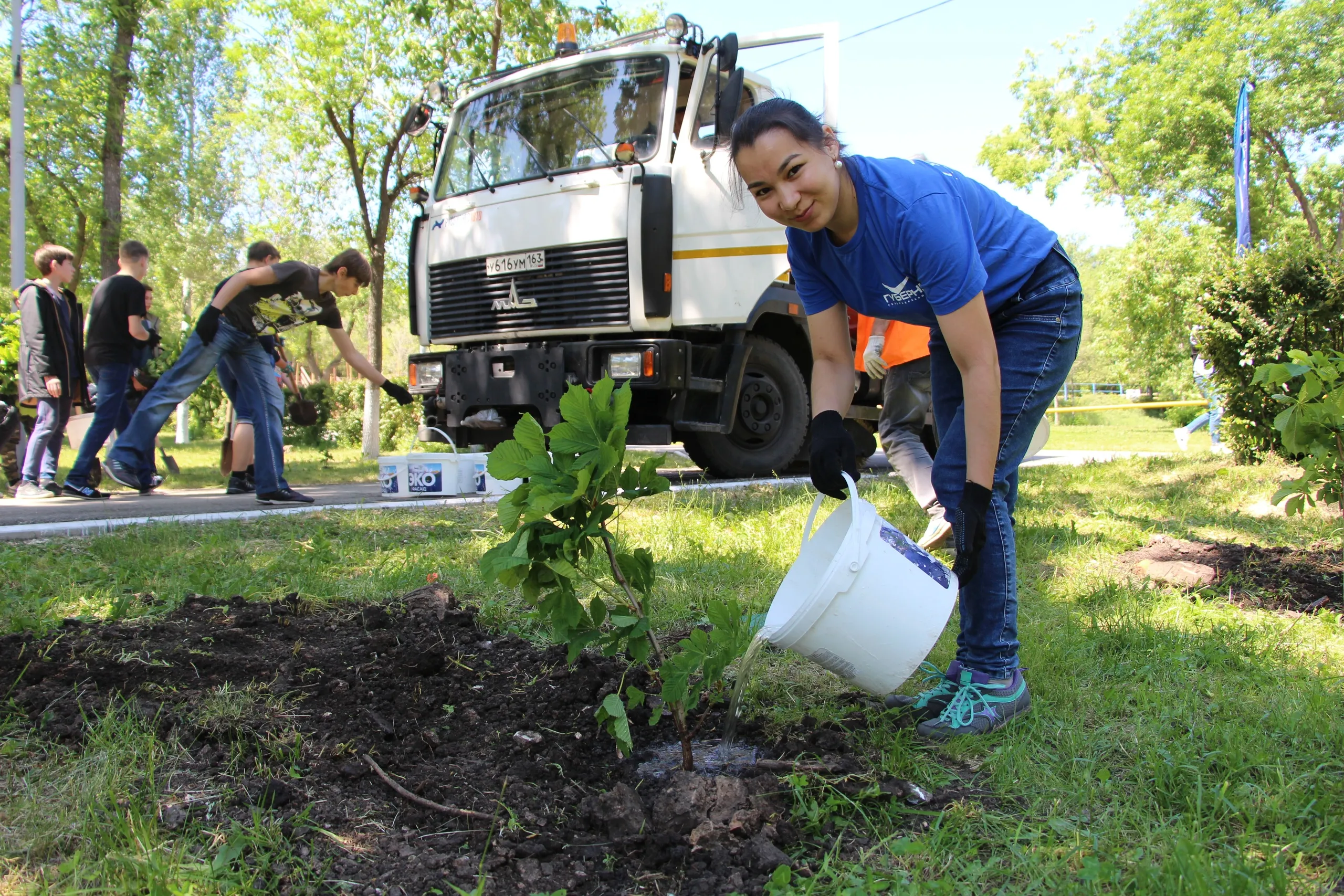 Вырастили их и подготовили для посадки ребята из школы № 2 поселка Суходол. Сегодня они проделали двухчасовой путь, чтобы своими руками преобразить парк в Советском районе города. Совместными усилиями работа велась вдвойне интенсивнее.