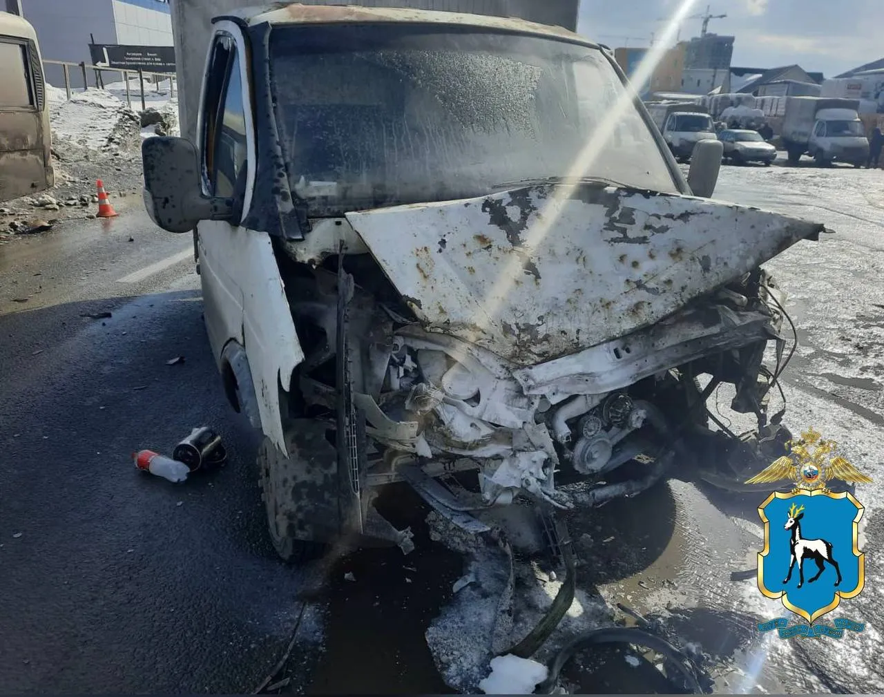 7 марта в Самаре на Красноглинском шоссе столкнулись два грузовика и автобус.