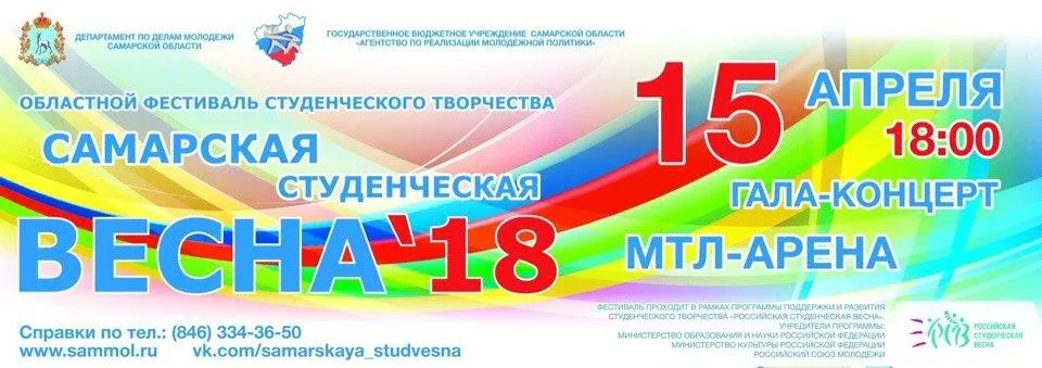Сегодня, 15 апреля, на сцене "МТЛ Арены" встретятся самые талантливые и креативные ребята Самарской области. На гала-концерт самарской Студвесны-2018 жюри отобрало 17 лучших номеров. Не обошлось и без предстоящего грандиозного события для города - чемпионата мира по футболу, а также Года волонтёра и добровольца. На мероприятии будут названы самые творческие университеты региона, которым вручат кубки, дипломы и памятные призы.