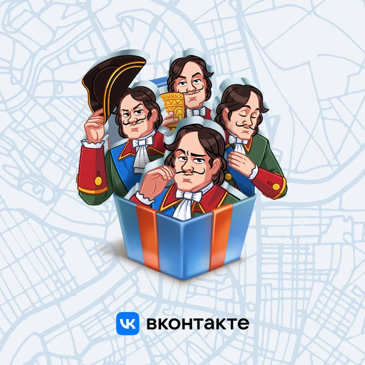 Набор стикеров из 36 юмористических изображений на все случаи жизни был выпущен в честь юбилея Петра Великого: в 2022 году исполнилось 350 лет со дня рождения императора. Приобрести юбилейный набор всё ещё можно в магазине стикеров ВКонтакте. До конца года он продаётся со скидкой: всего за 5 голосов. Проект стал продолжением давнего сотрудничества Эрмитажа и ВКонтакте, а также частью большой программы поддержки культурных учреждений от соцсети, куда входят в том числе гранты для проектов культуры.