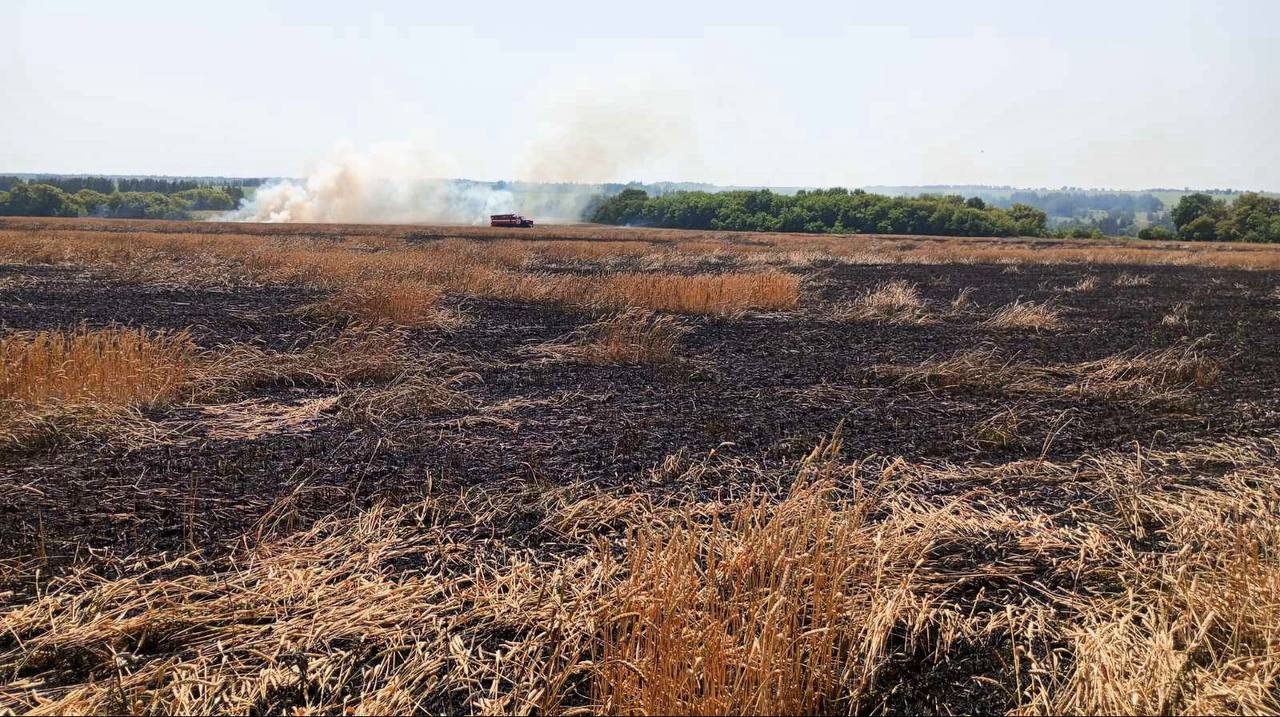 Огонь охватил половину пшеничного поля площадью 80 га в селе Березки. Изначально там горели три участка по 200 кв. м. Далее возгорание расширилось до 40 га.