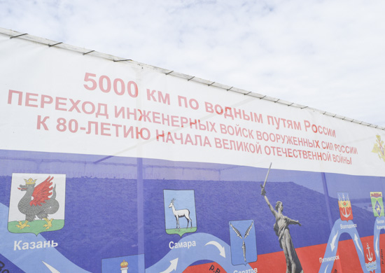 На демонстрационном пароме представлены как раритетные экспозиции инженерного вооружения, так и современные образцы и техника, в том числе роботы "Кобра" и "Скарабей". Речной переход приурочен 80-й годовщине начала Великой Отечественной войны.