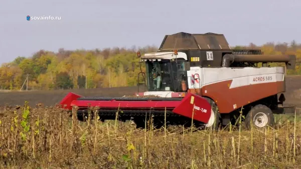 Место сбора - демополигон. В центре внимания - процесс сбора урожая подсолнечника, выращенного с помощью технологии twin row (твин роу) – это раскладка в шахматном порядке. Результат почти на три центнера с гектара больше, чем по классической системе на 70 см.