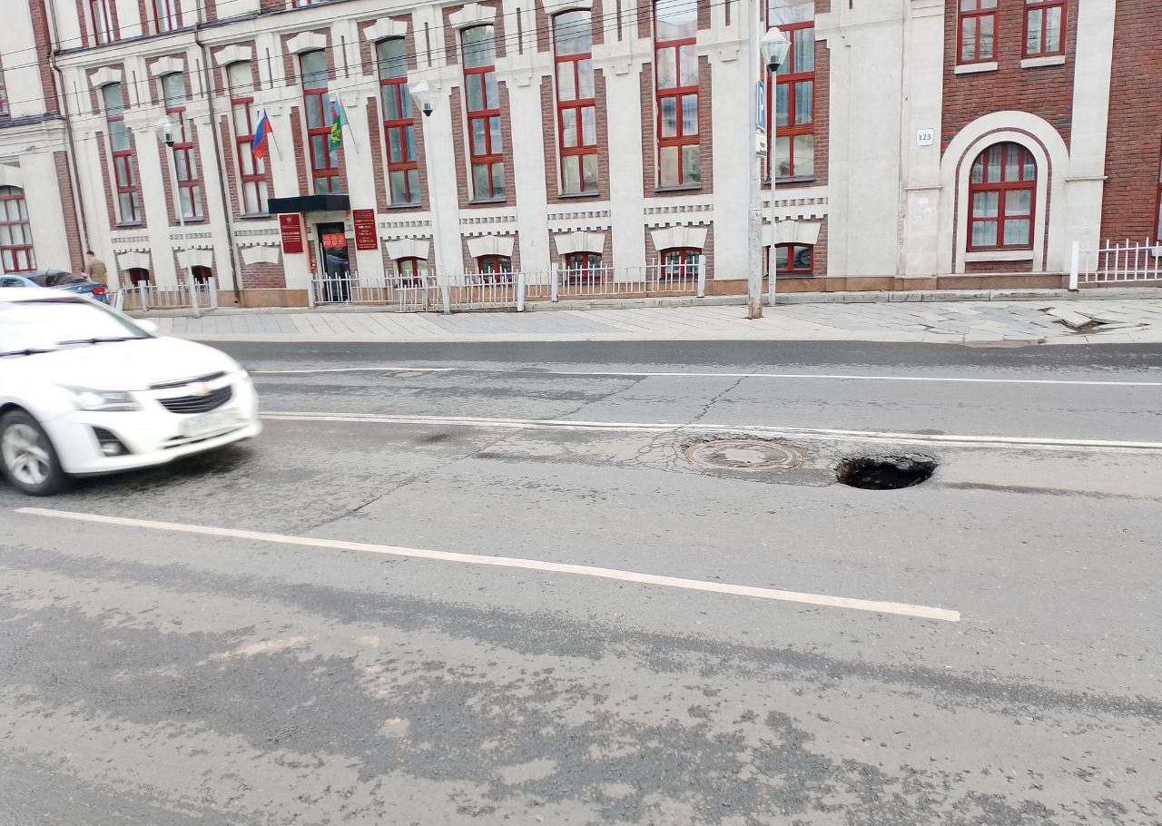 Провал случился около дома № 123 - в нескольких метрах от офисного центра "Капитал Haus" и остановки Буянова.