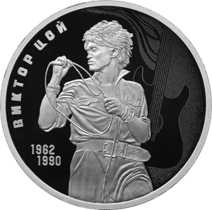 В Банке России отметили, что монету выпустили тиражом 5 тысяч единиц. Она выполнена из серебра 925 пробы. На ее оборотной стороне - рельефное изображение портрета Виктора Цоя с микрофоном на фоне гитары с символическими языками пламени. На лицевой стороне монеты - рельефное изображение Государственного герба.
