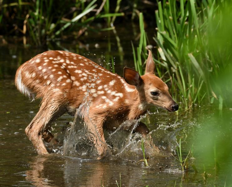 Жители 64-го региона выбрали имя для олененка. Малыш родился в начале июля в экопарке "Олений остров" в Татищеве.