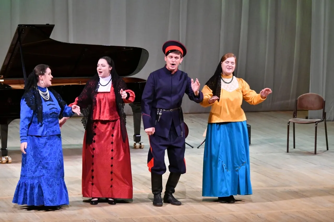 Затем, в первой части концерта, выступали юные исполнители. Артисты из "Традиции" вместе с руководителями этого ансамбля Анастасией и Артемом Нестеровыми пели старинные песни под звуки скрипочки и балалайки, водили хороводы, показывали фрагменты свадебных обрядов. А потом вдруг оказывалось, что в роли невест выступали юные ученицы Березовского. Обряд завершался, после чего Карина и Алисия дарили публике свое фортепианное искусство.