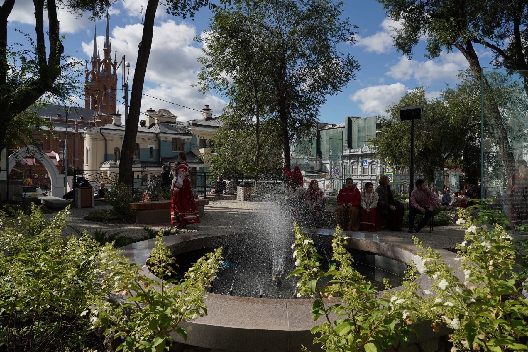 В целом сквер Аксаковых получился исторически ценным и семейным. По всему пространству разместили арт-объекты, изображающие разлетевшиеся страницы книги "Аленький цветочек" с текстом и иллюстрациями. Сюжет сказки иллюстрируется и дендрологическим сценарием. По мере движения по лабиринту тропинок раскрывается то сказочный лес, то волшебный сад. А еще есть фонтаны и уютные скамейки.
