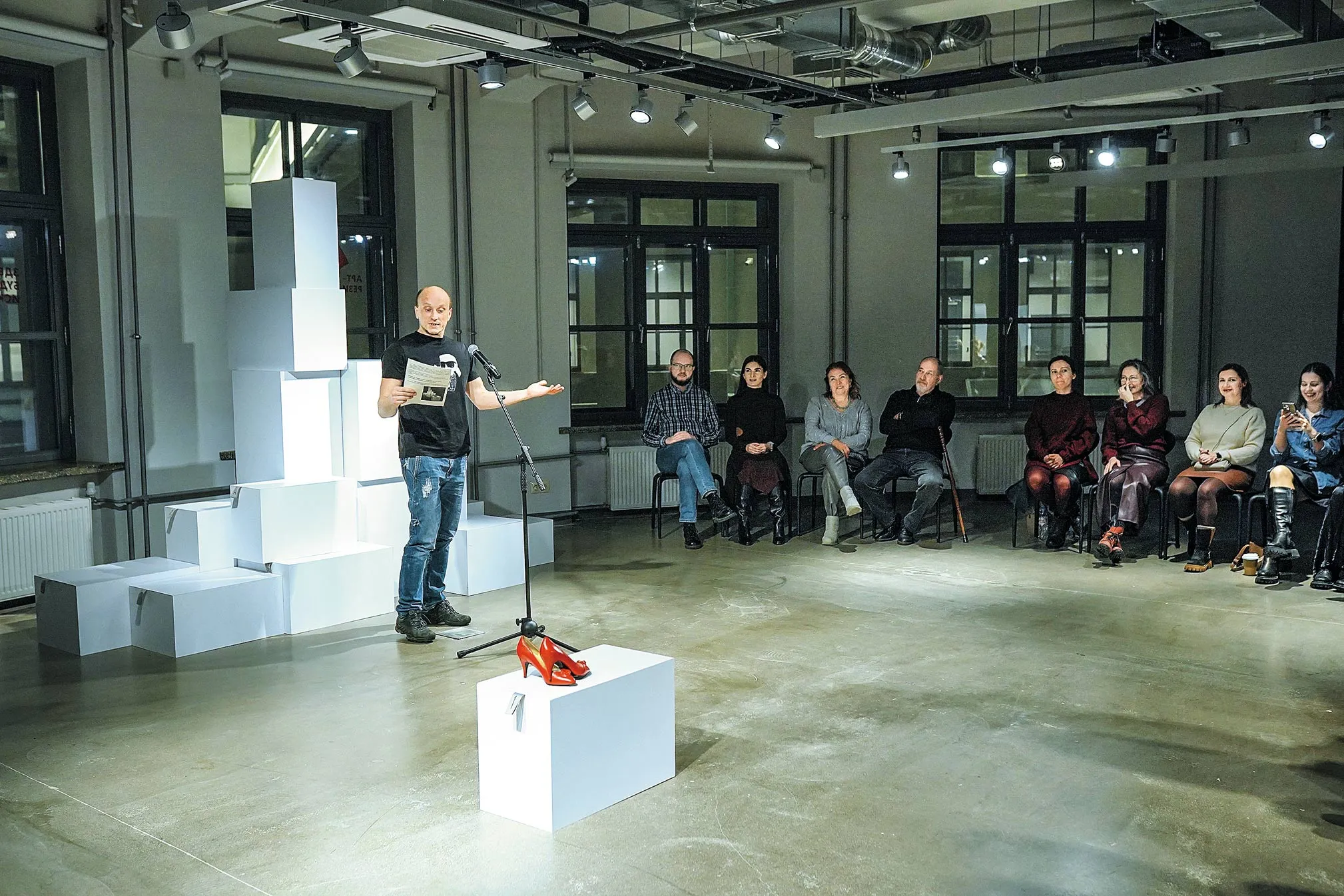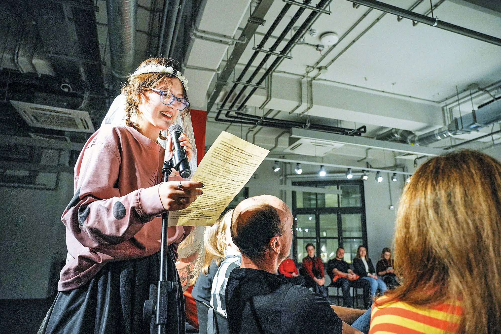 Все легко принимали правила игры. Порой даже слишком легко. В одной из историй очевидно нарциссичный герой просит кого-нибудь из зала переложить свой "прах" из простенькой урны в красивую вазу. Потому что читающий это послание - его будущее перерождение в другом теле, и он не должен утруждать свои "прекрасные пальчики" (так и сказано). Добровольцы находятся без всякой паузы.