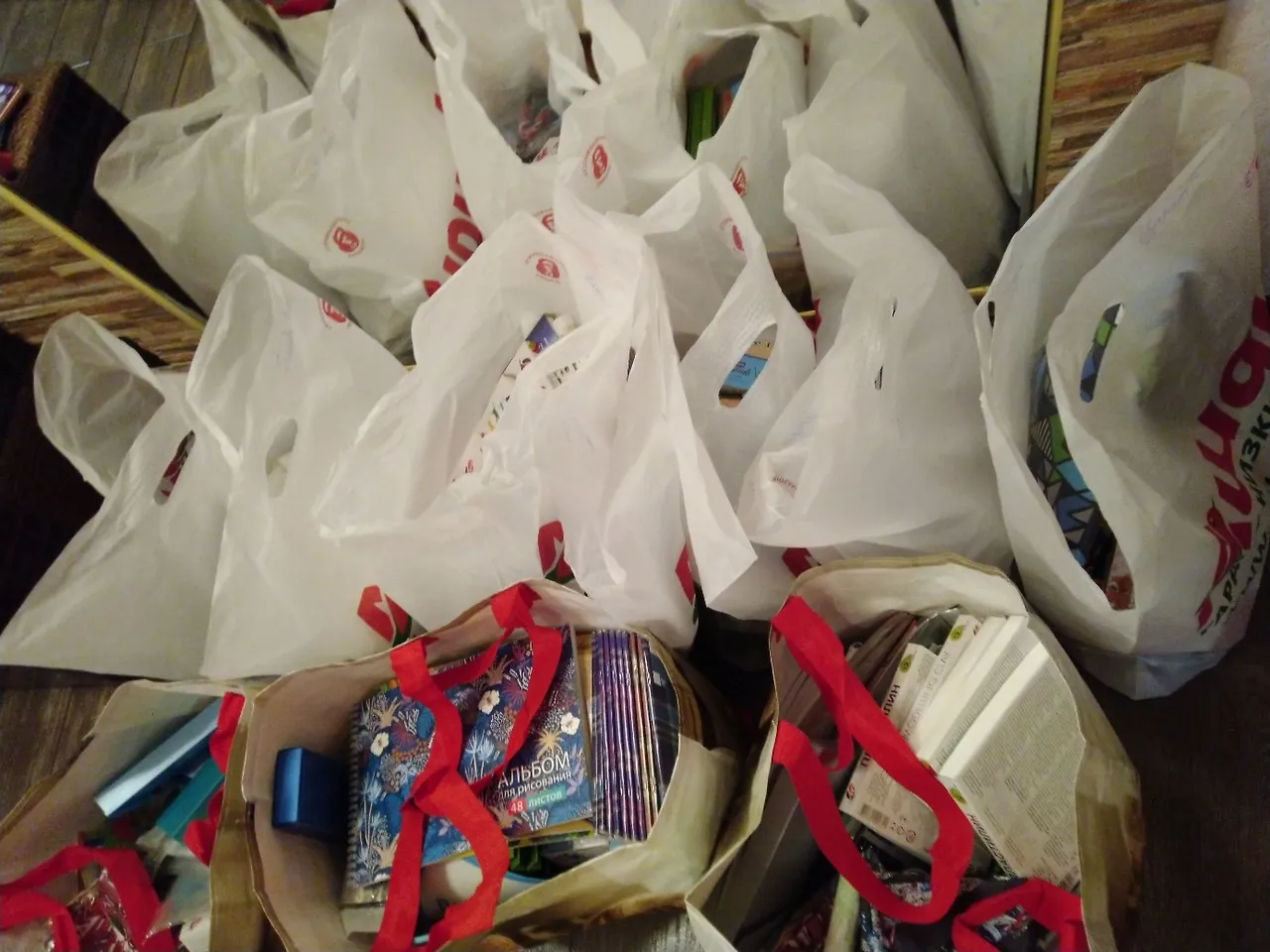 Благодетелями выступили Самарская областная общественная организация поддержки семьи и детства "Вместе" и активисты Общероссийского народного фронта. Они сумели собрать средства для покупки содержимого школьных наборов. Детям в преддверии 1 сентября были подарены школьные ранцы, наборы канцтоваров, куда вошли учебники, тонкие и общие тетради, дневники, ручки, карандаши, фломастеры, краски, кисти, альбомы для рисования, наборы для творчества, пластилин. Кроме того, были подарены детские сувениры, пижамы и сумки для второй обуви.