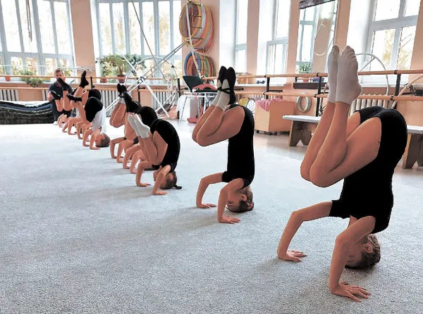 Первым делом "испытали" репетиционный ковер и остались довольны. Он удобен для акробатов и гимнастов.