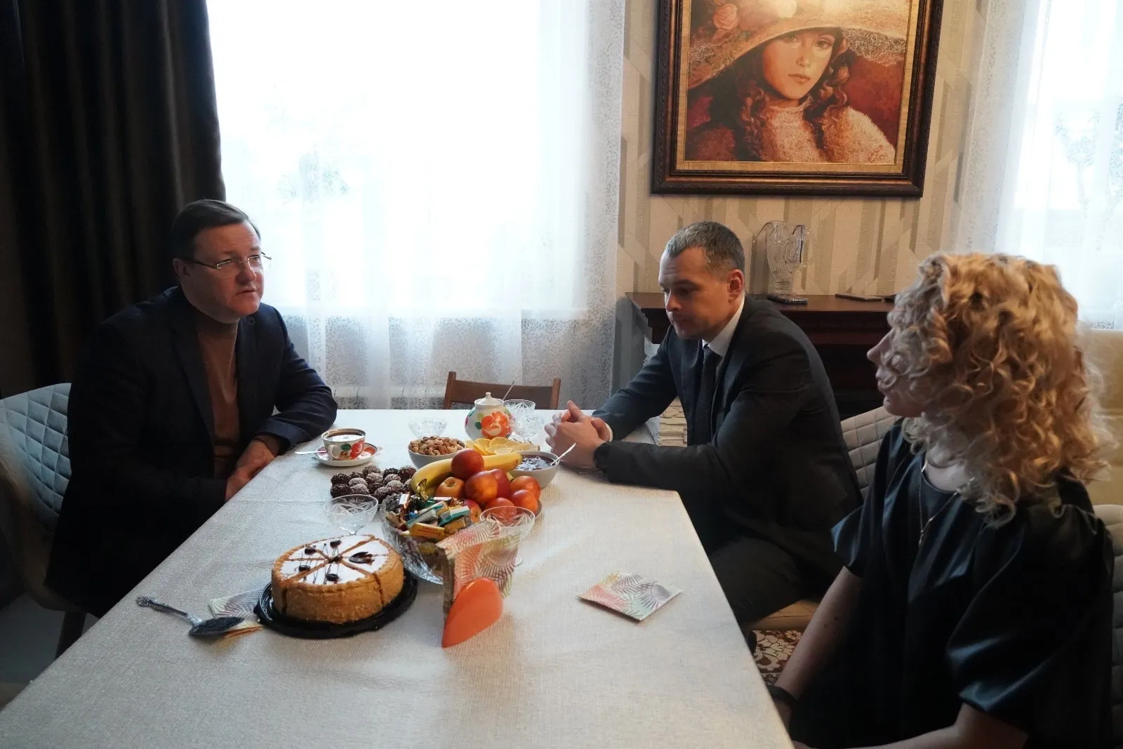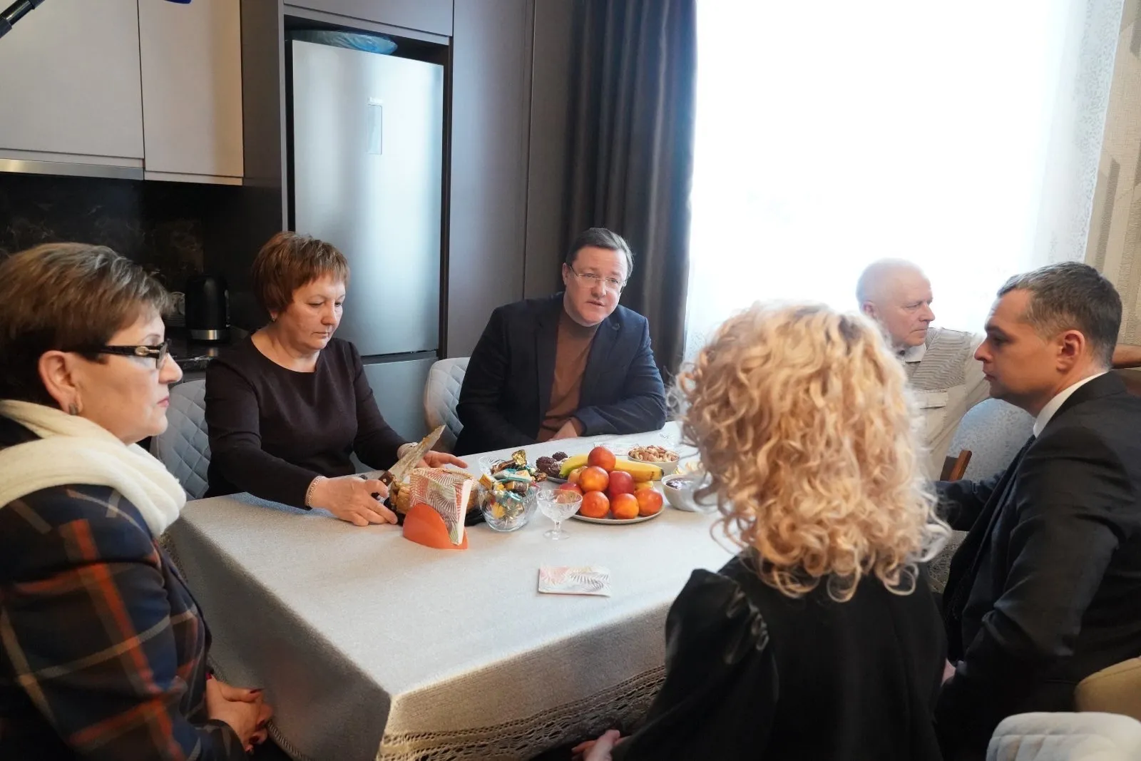 На встрече Дмитрий Азаров спросил у супруги воина, какая необходима помощь, оказывают ли им поддержку местные власти.