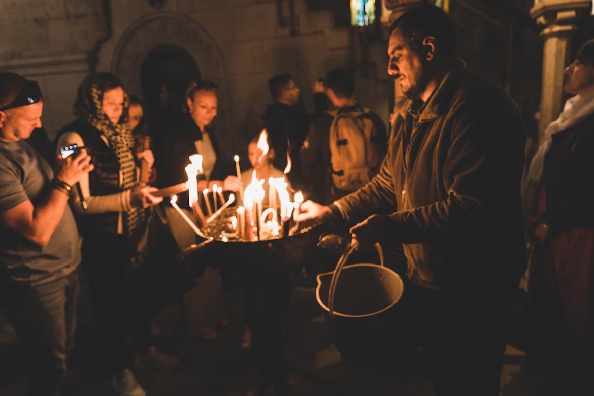 Чудо произошло в Кувуклии — мраморной часовне, которая находится над пещерой, где было погребено тело Иисуса Христа.