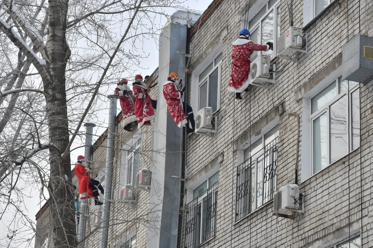 В среду, 29 декабря, в многопрофильной детской больнице ГБУЗ СОДКБ им. Н. Н. Ивановой в Самаре произошло маленькое волшебство. Молодые люди в костюмах Дедов Морозов заглянули в гости к пациентам, в буквальном смысле спустившись с крыши с помощью альпинистского снаряжения. Это были аттестованные специалисты из Самарского регионального отделения Всероссийского студенческого корпуса спасателей.