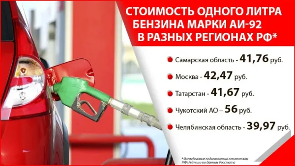 В среднем по стране за год стоимость 92 бензина увеличилась на 1,3 % и составила 42 рубля 35 копеек.