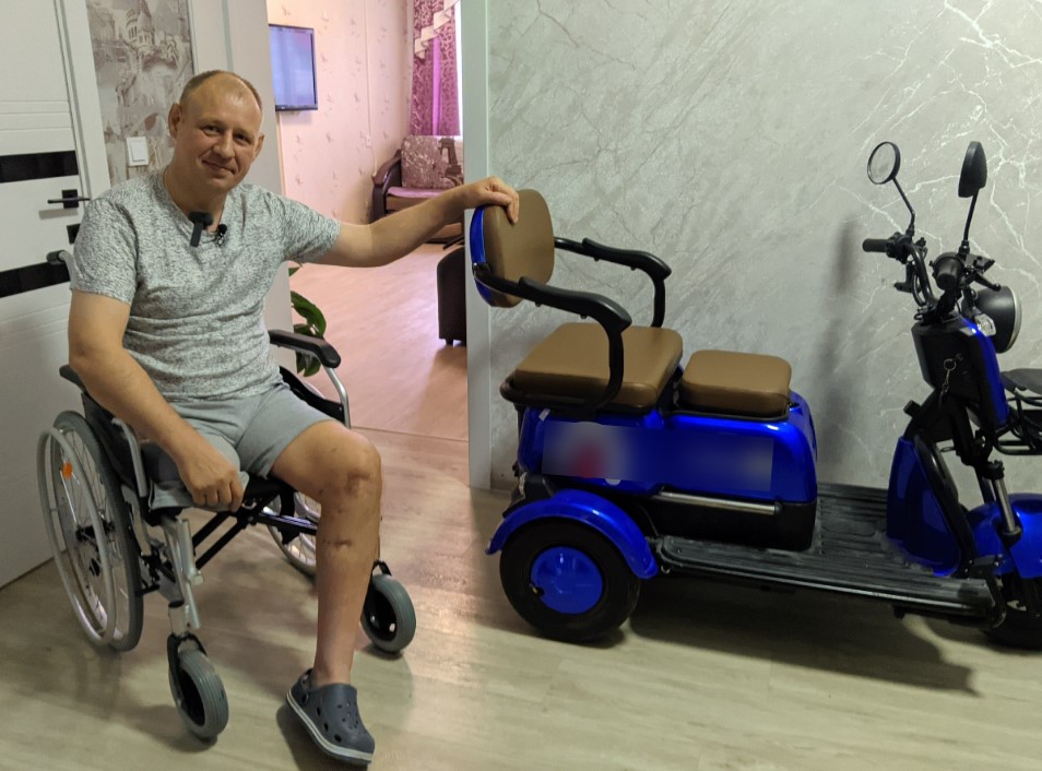 На фронте получил военную травму, попав под огонь крупного дрона с кумулятивными снарядами, которого бойцы называют "Баба-Яга". Врачи вынуждены были ампутировать правую ногу выше колена, а в левой ноге собирать переломы. В результате мужчина девять месяцев провел в госпитале и ему присвоена инвалидность второй группы.