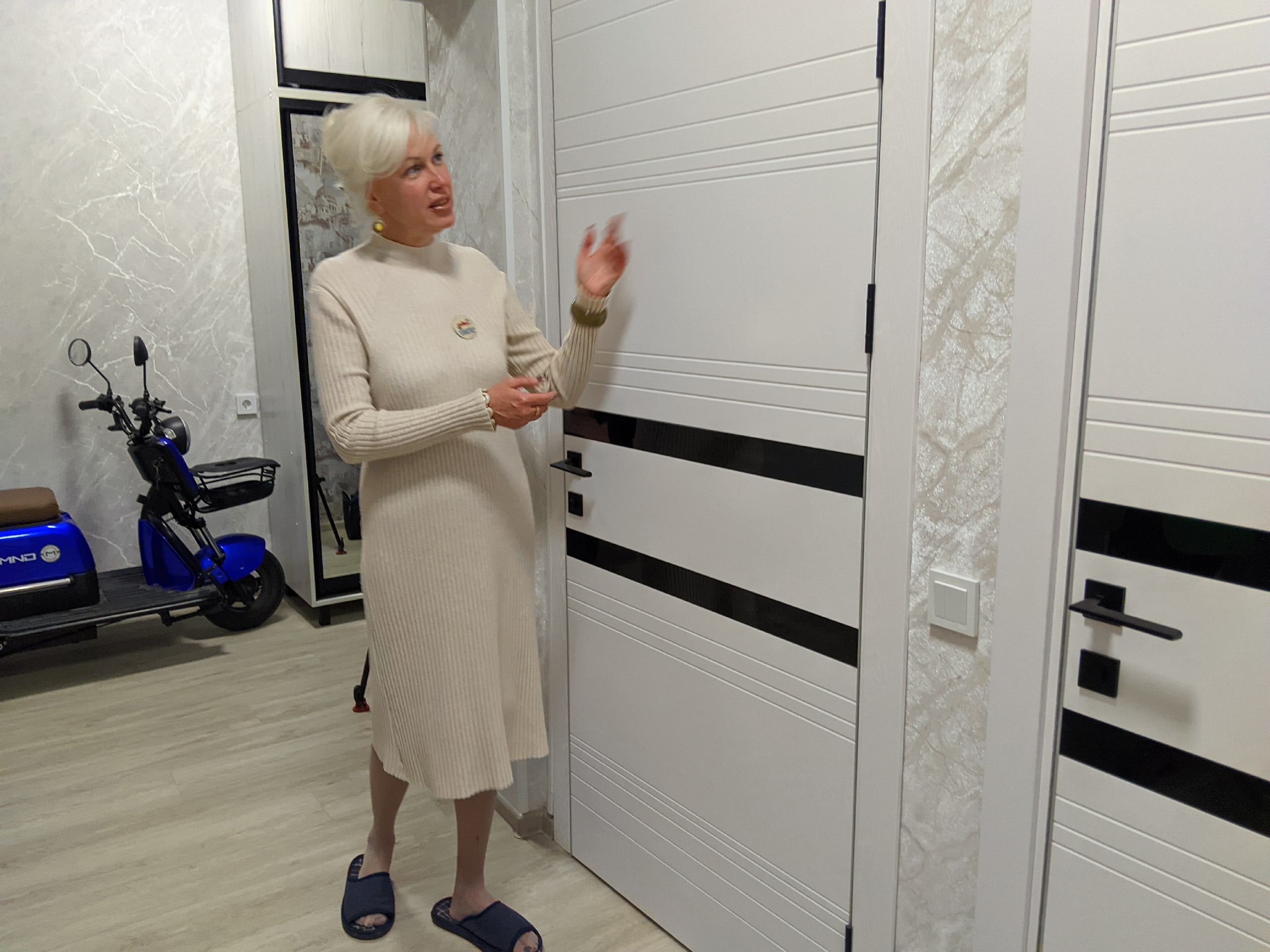 Во всей квартире теперь расширенные дверные проемы, в которых установлено в общей сложности семь новых дверей: входная, межкомнатные и на входах в туалет и ванную.
