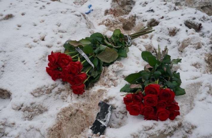 Главы регионов возложили цветы прямо на снег в паре метров от фуры, там еще несколькими часами ранее находился искореженный от лобового столкновения рейсовый автобус.