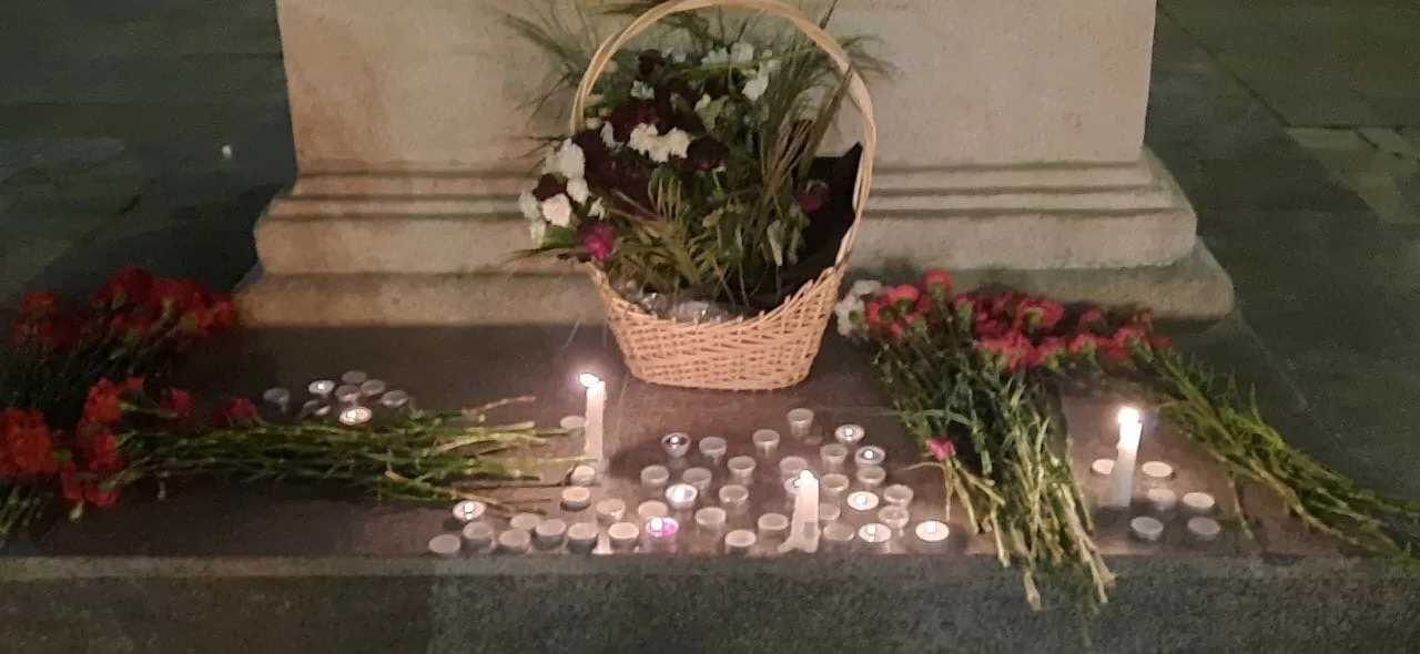 Вечером 11 мая десятки жителей областной столицы зажгли свечи и возложили цветы на фонтанах улицы Осипенко.