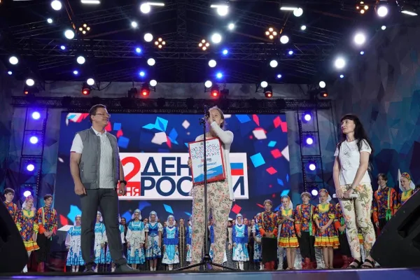 Губернатор также наградил участницу квеста #СтранаПобедителей", которая выиграла главный приз. Из числа участников, прошедших максимальное количество станций 12 июня, случайным образом выбрали счастливчика. Им стала 15-летняя Ирина. Девушка поднялась на сцену вместе с мамой Ольгой. Они получили в подарок сертификат на путешествие на двоих в один из городов России. Жребий определил - девушка поедет в Санкт-Петербург, причём в ближайшее время - в дни проведения Чемпионата Европы по футболу.