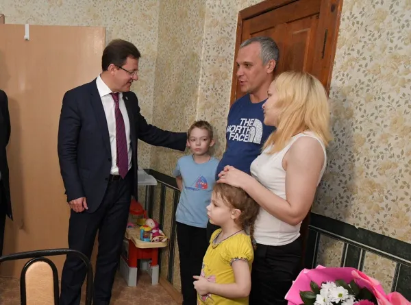 Глава региона после форума в Тольятти навестил многодетную семью. Чичневы проживают в Шлюзовом, где в марте справили новоселье.