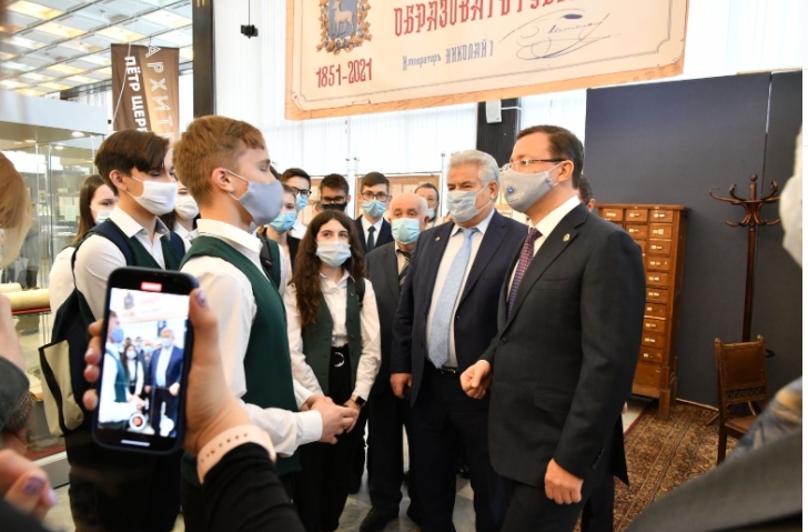 После торжественного открытия для гостей провели экскурсию по выставочным экспонатам. Вместе с главой региона факты о самарской истории с удовольствием узнавали учащиеся городских школ.