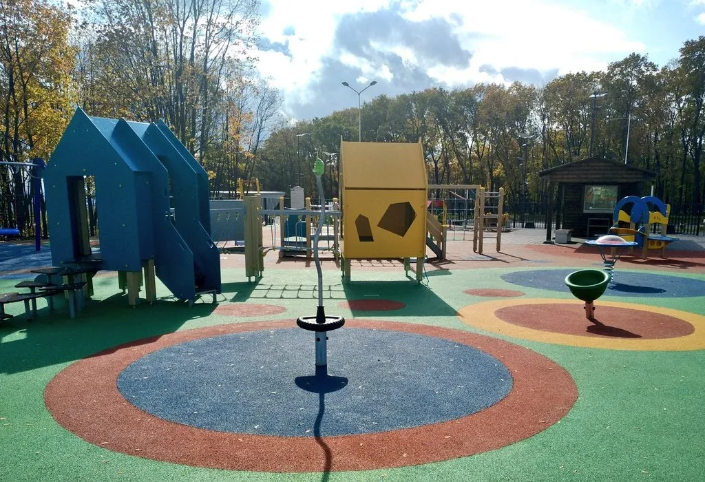 Сообщается, что на территории уложено специальное покрытие, которое подойдет малышам на колясках. Кроме того, здесь уже появились специальные широкие качели.