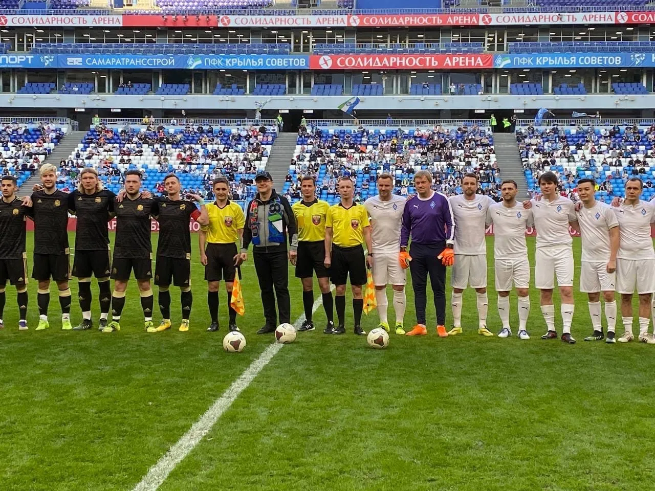 Второй матч на "Солидарность Арене" открыл лично губернатор - первым ударил по мячу, отдав пас "своим". Дмитрий Азаров поблагодарил ветеранов самарского футбольного клуба за то, что они хранят традиции. Глава региона подчеркнул, что именно на них равняются сегодняшние футболисты.