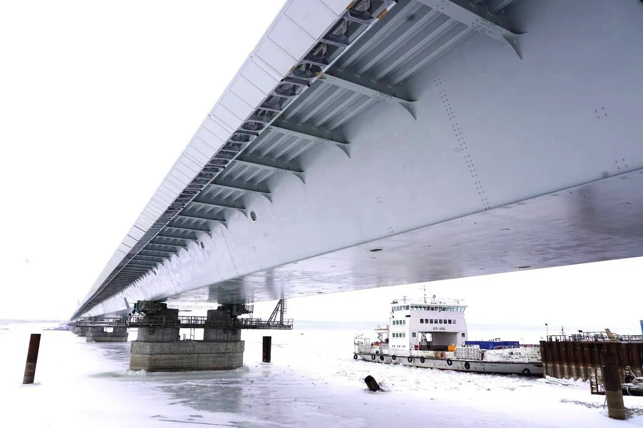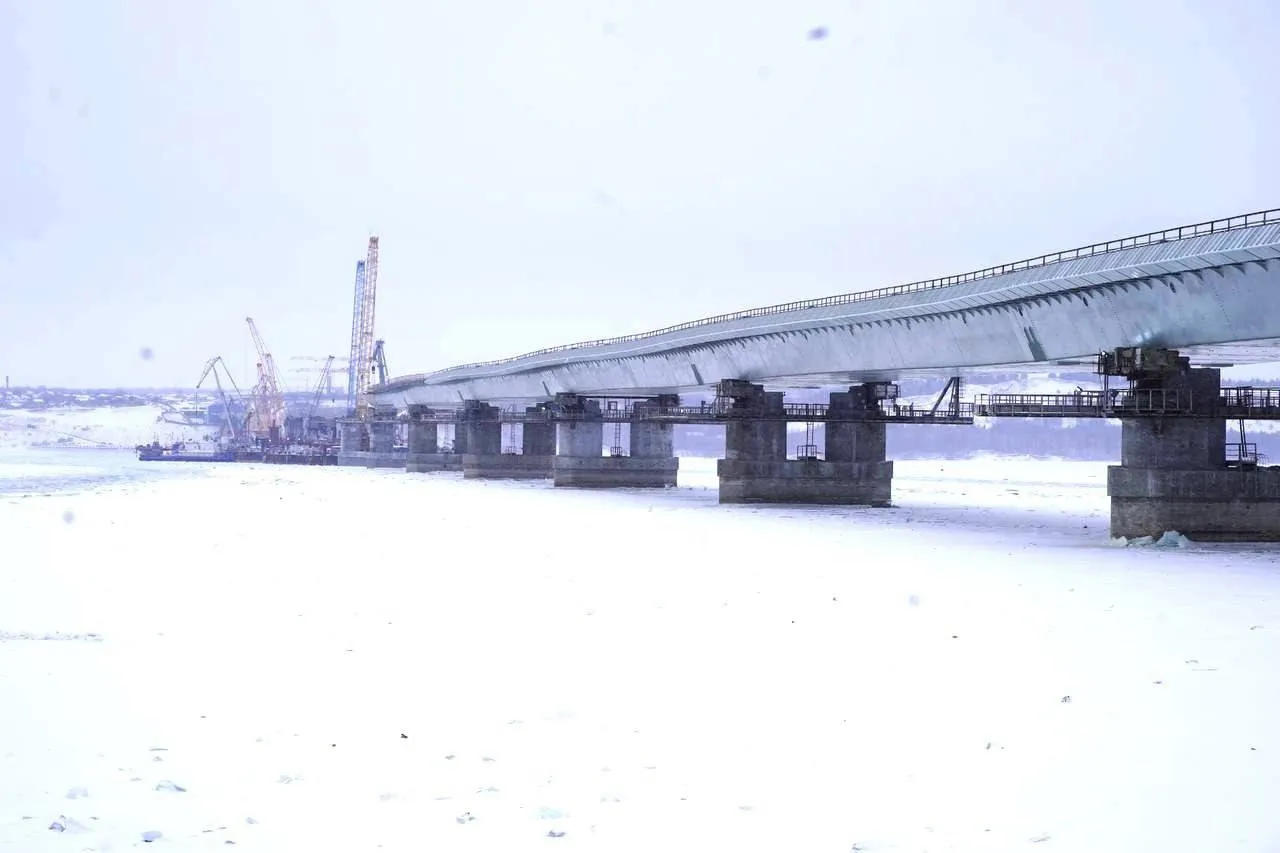 Общая длина мостовой конструкции над Волгой - 3,7 км. В настоящее время ведутся работы на всех 26 опорах моста, идет сборка пролетных строений.