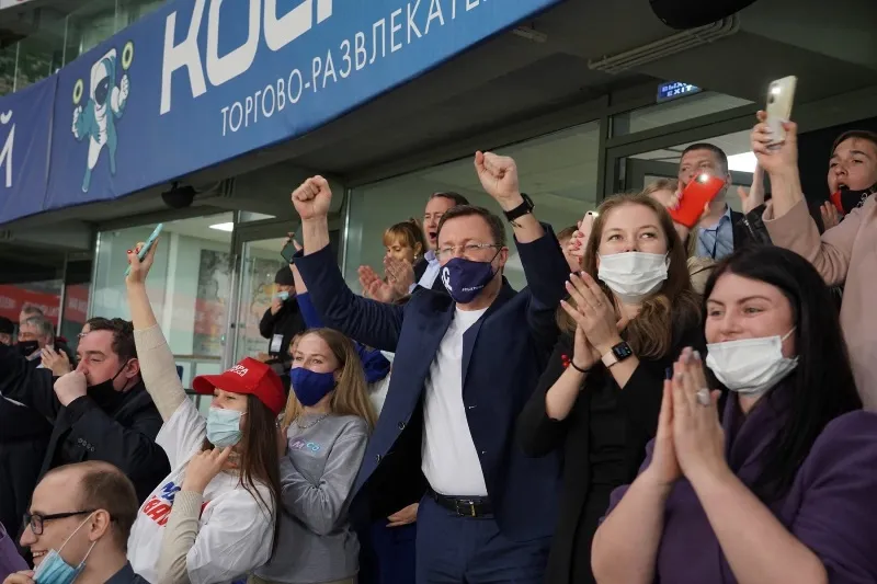Губернатор Самарской области, секретарь регионального отделения партии "Единая Россия" Дмитрий Азаров посмотрел вместе с волонтерами губернии футбольный матч на стадионе "Солидарность Арена". Больше двух тысяч добровольцев получили возможность поболеть за команду "Крылья Советов" в четвертьфинале Кубка России по футболу.