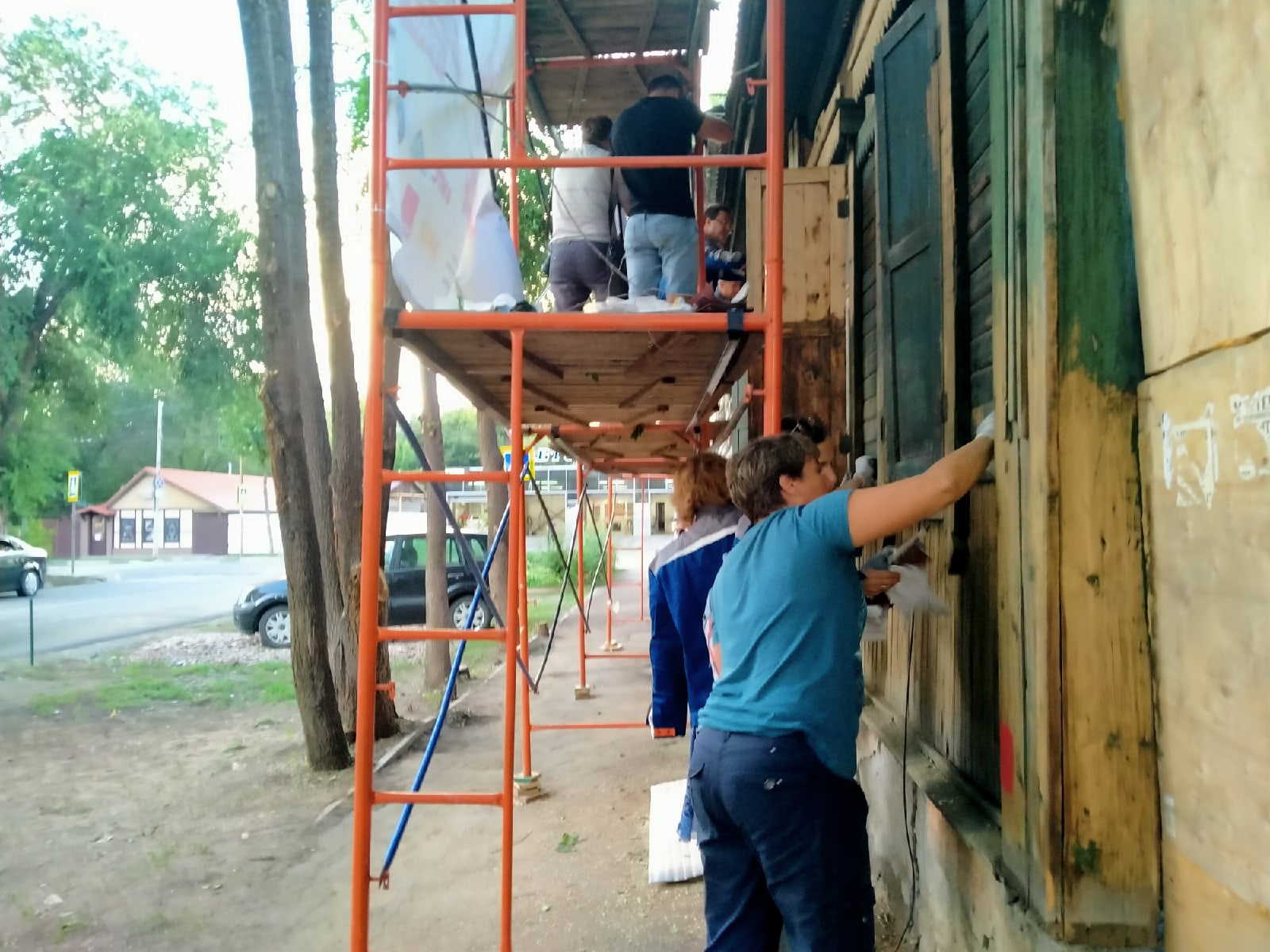 Главная цель проекта - сохранить ветшающие здания за счет объединения усилий власти, активистов и бизнеса. Уже вторую неделю волонтеры занимаются реконструкцией дома № 127 на улице Братьев Коростелёвых. Очищают фасад от старой краски, мезонины от чужеродного металла, приямок от мусора.