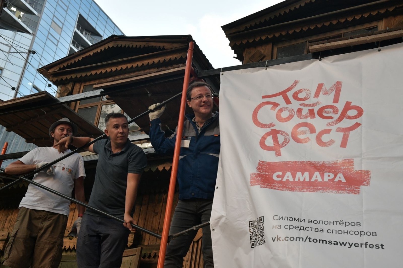 В Самаре продолжается шестой по счету сезон местного "Том Сойер Феста". Сегодня к волонтерам-добровольцам, которые восстанавливают исторические здания, присоединился губернатор Дмитрий Азаров.