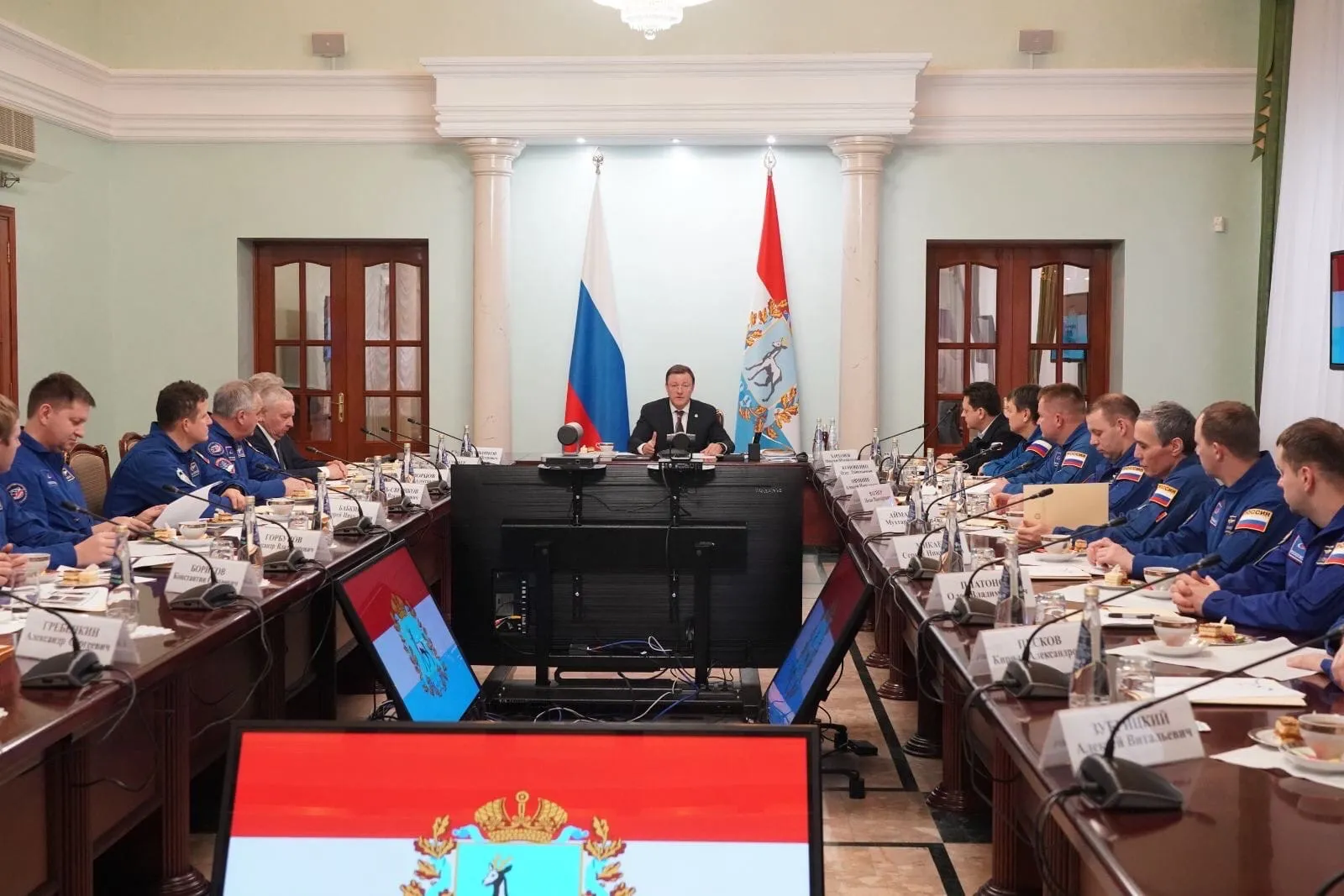 Встреча прошла в знаковом месте – в здании бывшей дачи Обкома КПСС в Самаре, где Юрий Гагарин отдыхал после первого полета в космос. В обсуждении перспектив сотрудничества между отрядом космонавтов и Самарской областью также приняли участие президент Самарского национального исследовательского университета имени академика С.П. Королева, доктор технических наук, профессор, академик Российской академии наук Виктор Сойфер и председатель Самарской Губернской Думы, председатель Совета ректоров вузов Самарской области, доктор медицинских наук, профессор, академик Российской академии наук Геннадий Котельников.