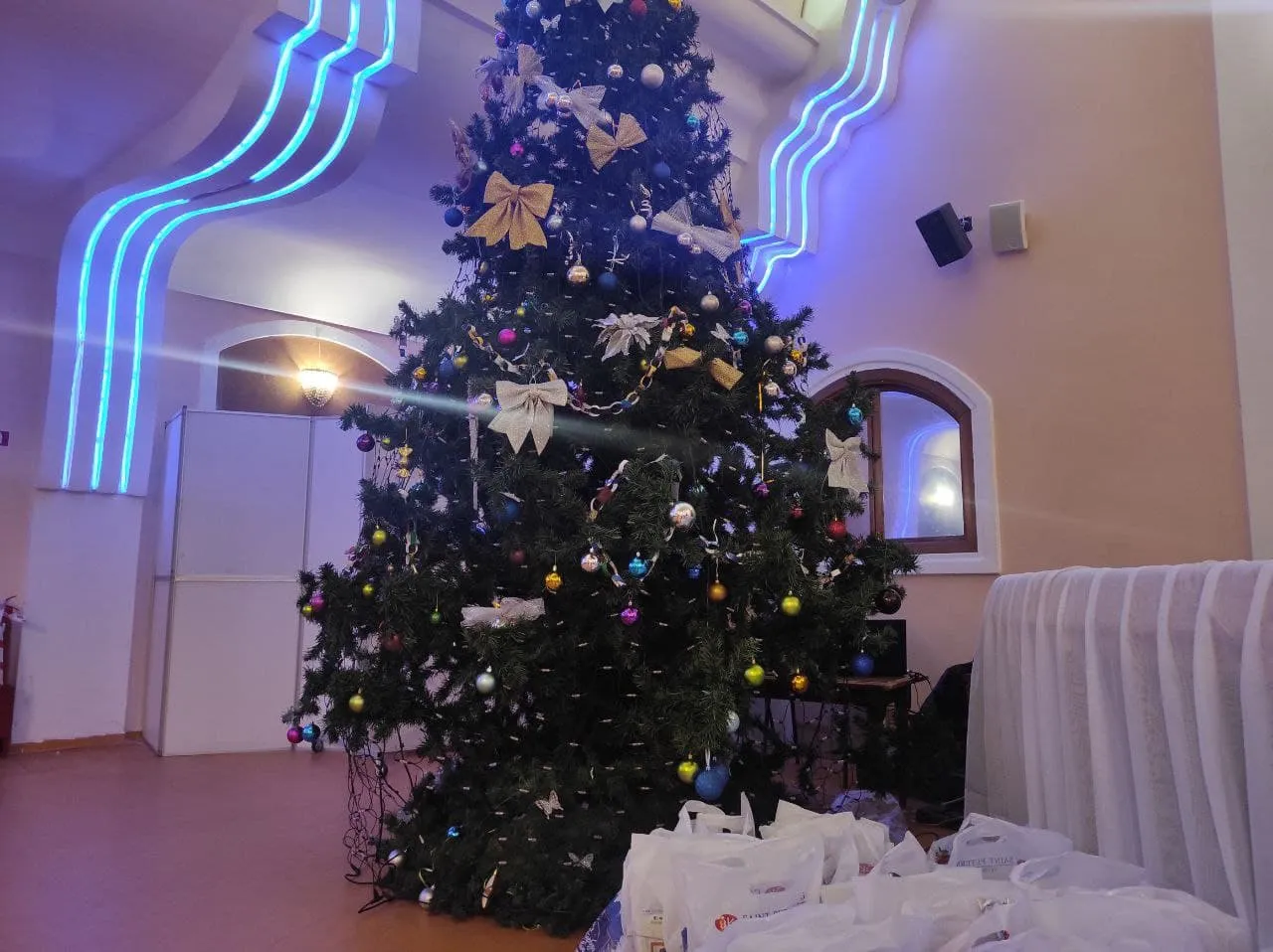 Организовать Рождественскую елку благотворительному фонду "Источник веры" помогли друзья и партнеры. Однако главным событием этого дня стала презентация выставки картин подопечных фонда – мальчиков и девочек с различными формами детского церебрального паралича. Проект получил название "Души цвета покажем" (альтернативное прочтение аббревиатуры ДЦП), и он возможен благодаря финансовой поддержке Фонда президентских грантов, которую получил БФ "Источник веры".