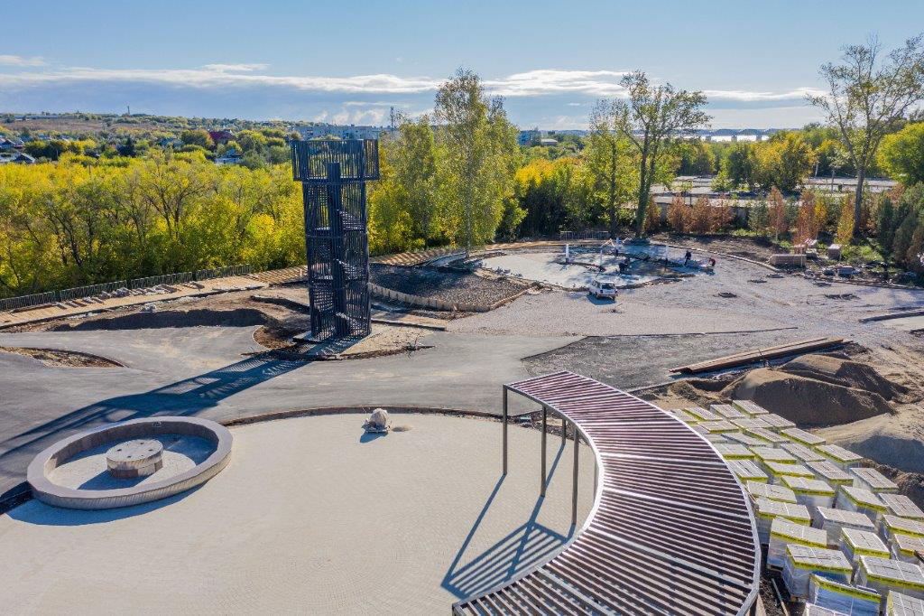 Главная высотная доминанта парка - смотровая башня - уже возвышается над городом. Такая достопримечательность занимает центральное место в композиции общественного пространства.