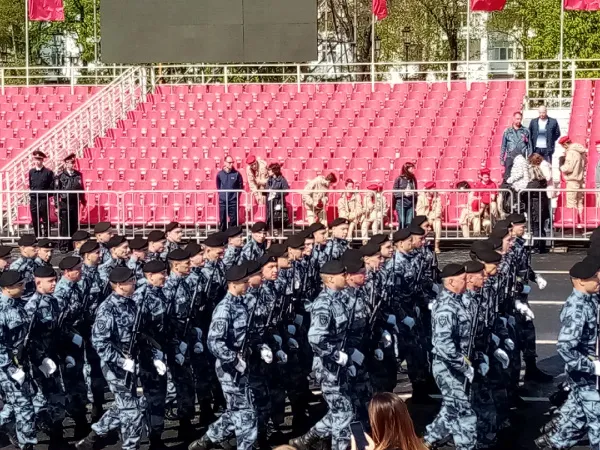 Сегодня, 7 мая, на площади Куйбышева проходит генеральная репетиция парада Победы. Это самый зрелищный прогон, поскольку в нем участвуют не только пешие, но и механизированные колонны.