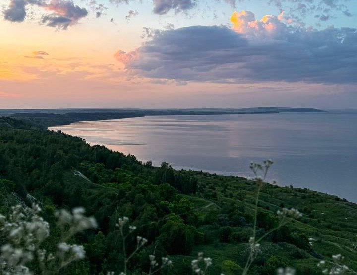 Окрестности села Новодевичье - это эмоциональный коктейль из захватывающих пейзажей Волги, неспешных прогулок по каменистому пляжу и зеленым склонам. На одной из таких вершин находится беседка с лавками (53.594011, 48.866365), где можно отдохнуть и перекусить с лучшими видами.