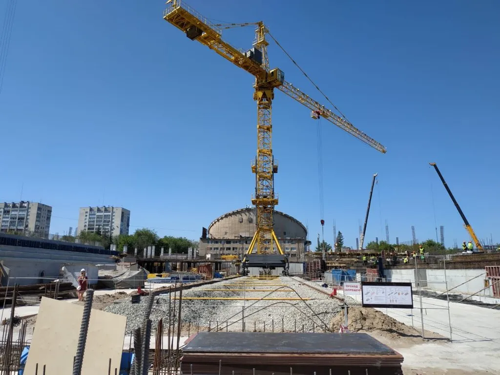 Готовность водопроводных сетей и канализации оценивается в 80 %. Работа ведется ежедневно до 22:00. На стройплощадке задействованы два башенных крана.