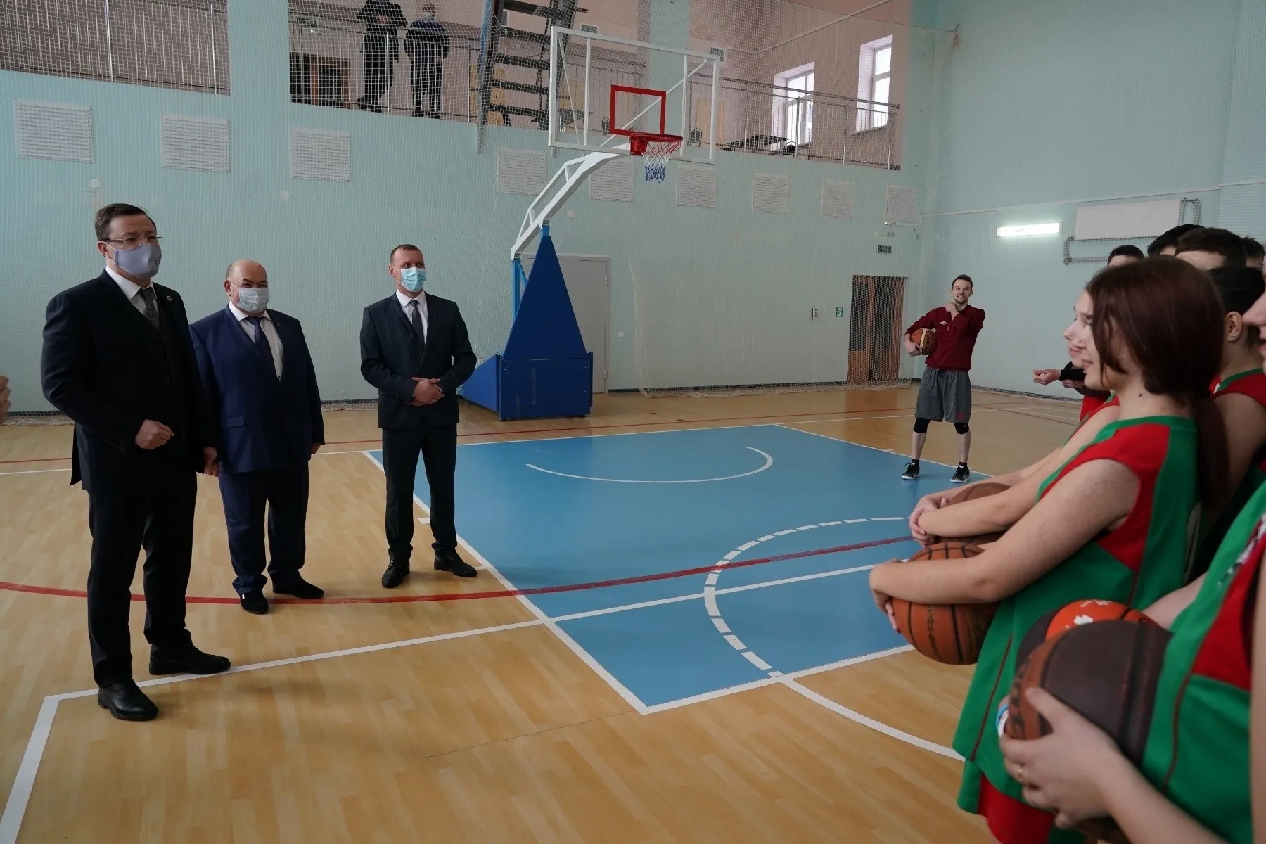 Любителей спорта в ФОКе можно застать с раннего утра. Вот и сегодня там уже занимались пловцы и баскетболисты. Дмитрий Азаров пообщался с ребятами из секции по баскетболу. Глава региона пожелал им успехов в соревнованиях, а также в сдаче экзаменов — тем, кто уже поступает в вузы.