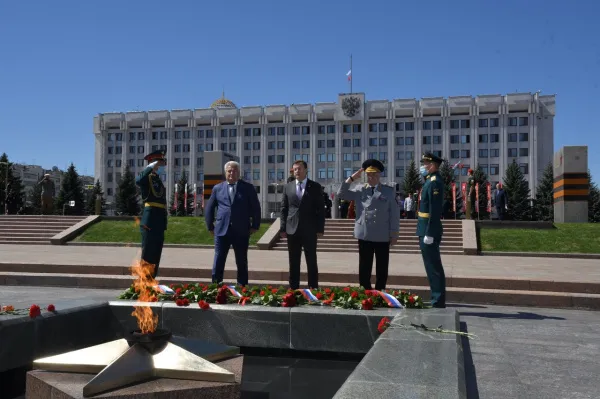 22 июня - годовщина начала Великой Отечественной войны. Губернатор Дмитрий Азаров, спикер губернской думы Геннадий Котельников, главный федеральный инспектор по Самарской области Юрий Рожин, а также руководители администрации Самары и силовых ведомств региона возложили цветы к Вечному огню на площади Славы, почтив память защитников Родины и тружеников тыла.