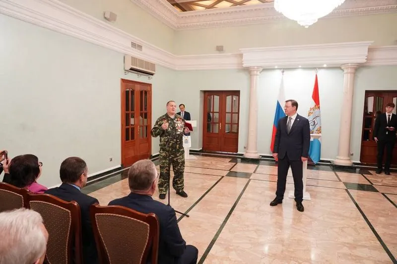 - Каждый из нас на своем рабочем месте, своей деятельностью старается приблизить день нашей победы. От всей души поздравляю вас с наступающим Новым годом. Этот год был непростым. Но было и много поводов для гордости и радости. В том числе за нашу Отчизну, за свою Самарскую область. В этом есть огромный вклад каждого из вас. Спасибо вам большое!Всего государственные, региональные и отраслевые награды сегодня получили более 40 жителей региона.