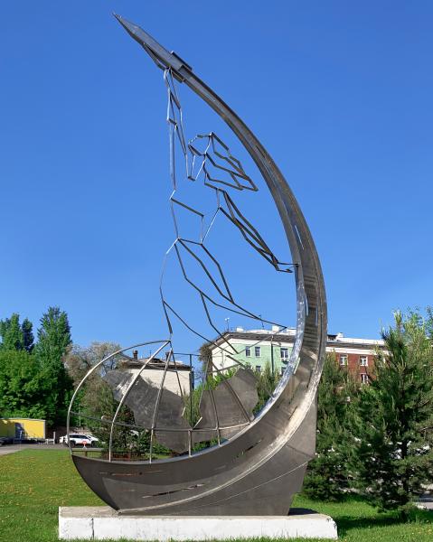 Загадочная незнакомка появилась на территории завода около 40 лет назад. По мнению самарского краеведа Глеба Алексушина, прообразом для композиции могла стать первая женщина-космонавт Валентина Терешкова. Она отправилась на орбиту Земли 16 июня 1963 года и провела там почти трое суток. После полета отдыхала в Куйбышеве. Возможно, этот факт вдохновил кого-то из местных умельцев.