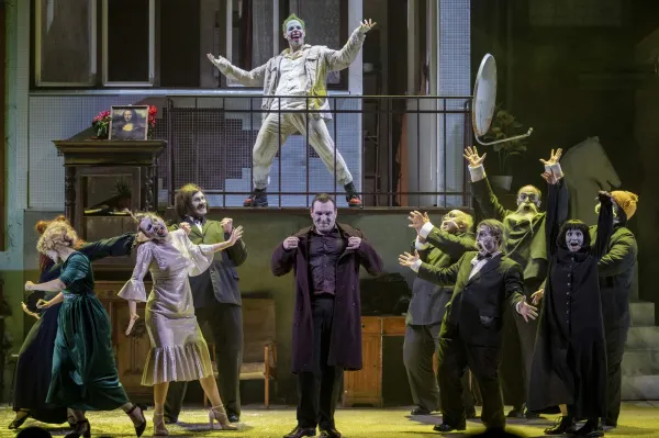 В спектакле Комарова много смеха самой разной природы. Есть и метатеатральное хулиганство, когда театр рефлексирует сам над собой. Например, целая сцена кастинга, иронизирующая над тем, как "зашоренный" актер принимает новый для него театральный язык, сделанная, кстати, тоже на гоголевском тексте ("Мне лягушку хоть сахаром облепи, не возьму ее в рот, и устрицы тоже не возьму: я знаю, на что устрица похожа"). Есть и постмодернистское дуракаваляние, не только остроумное, но и подчиненное вполне внятной логике. Почему, например, Ноздрев в этом спектакле - Джокер (яркая работа Алексея Егоршина)? Да потому что он у Гоголя и есть смешной персонаж, сеющий хаос, который вдруг оборачивается главным злодеем - ведь именно он публично разоблачает Чичикова.